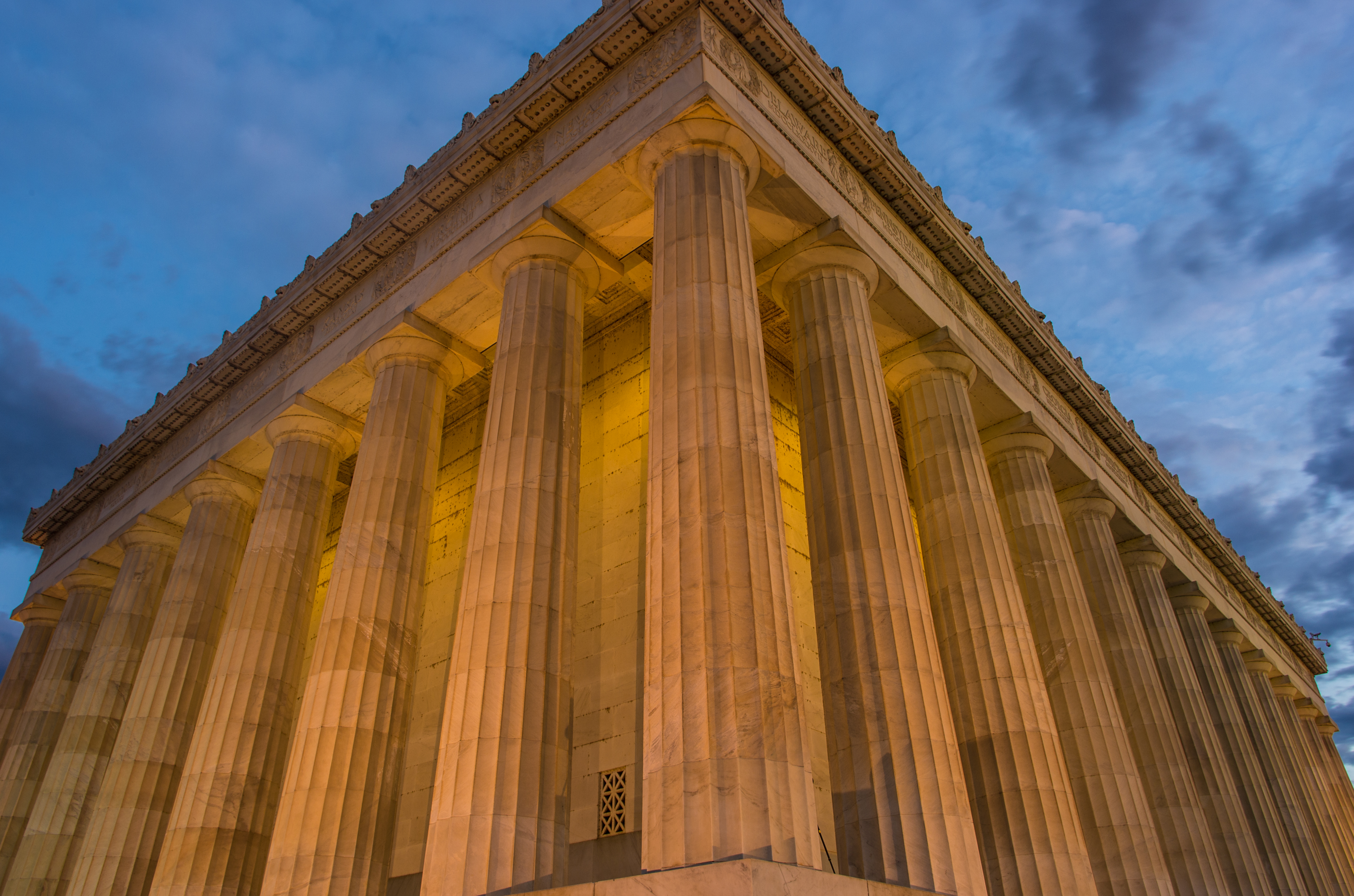 Most of these shots were at sunrise, notice the lack of people. This is the Lincoln Memorial from one of its corner, nice sky.