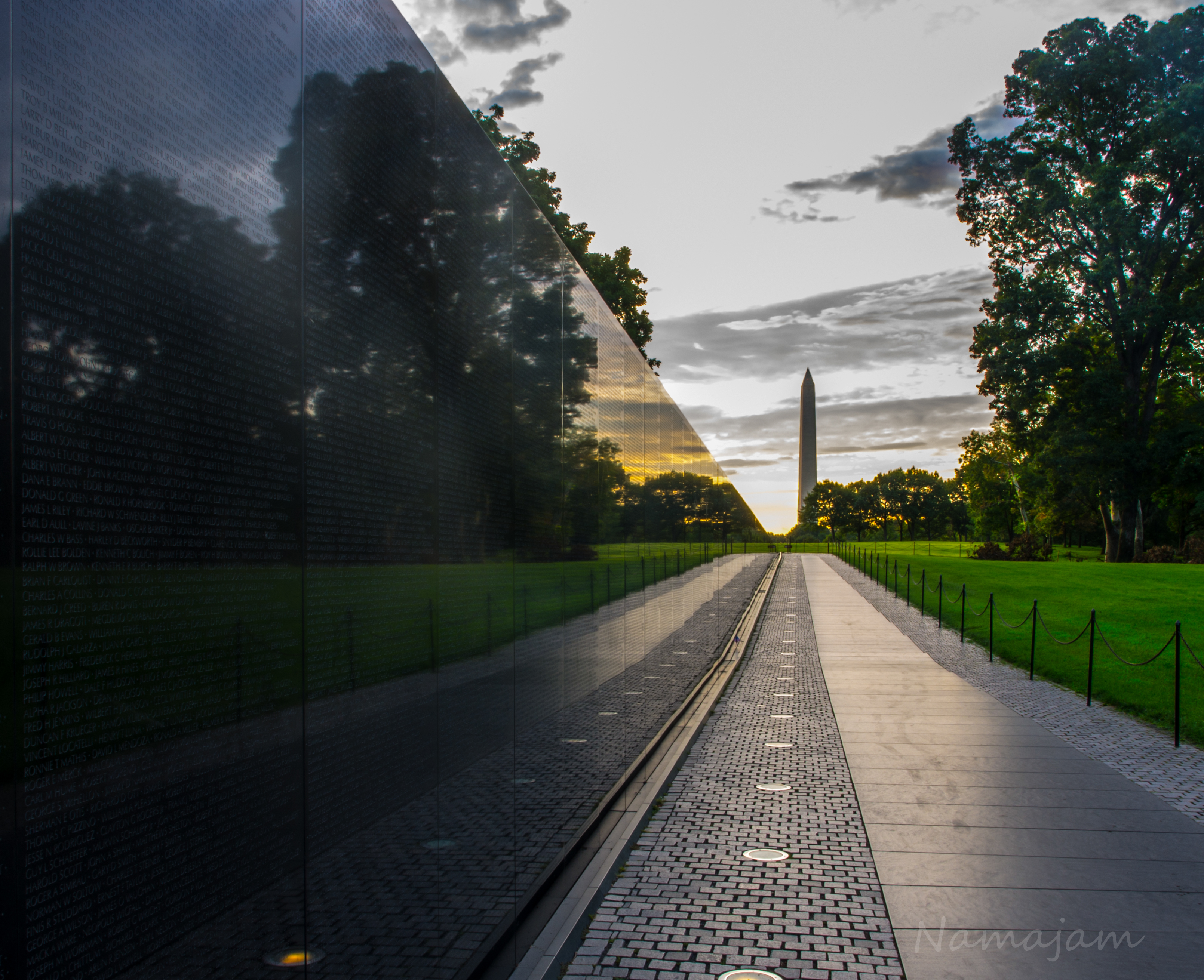 Vietnam Memorial with all lines leading to the Washington Monument.