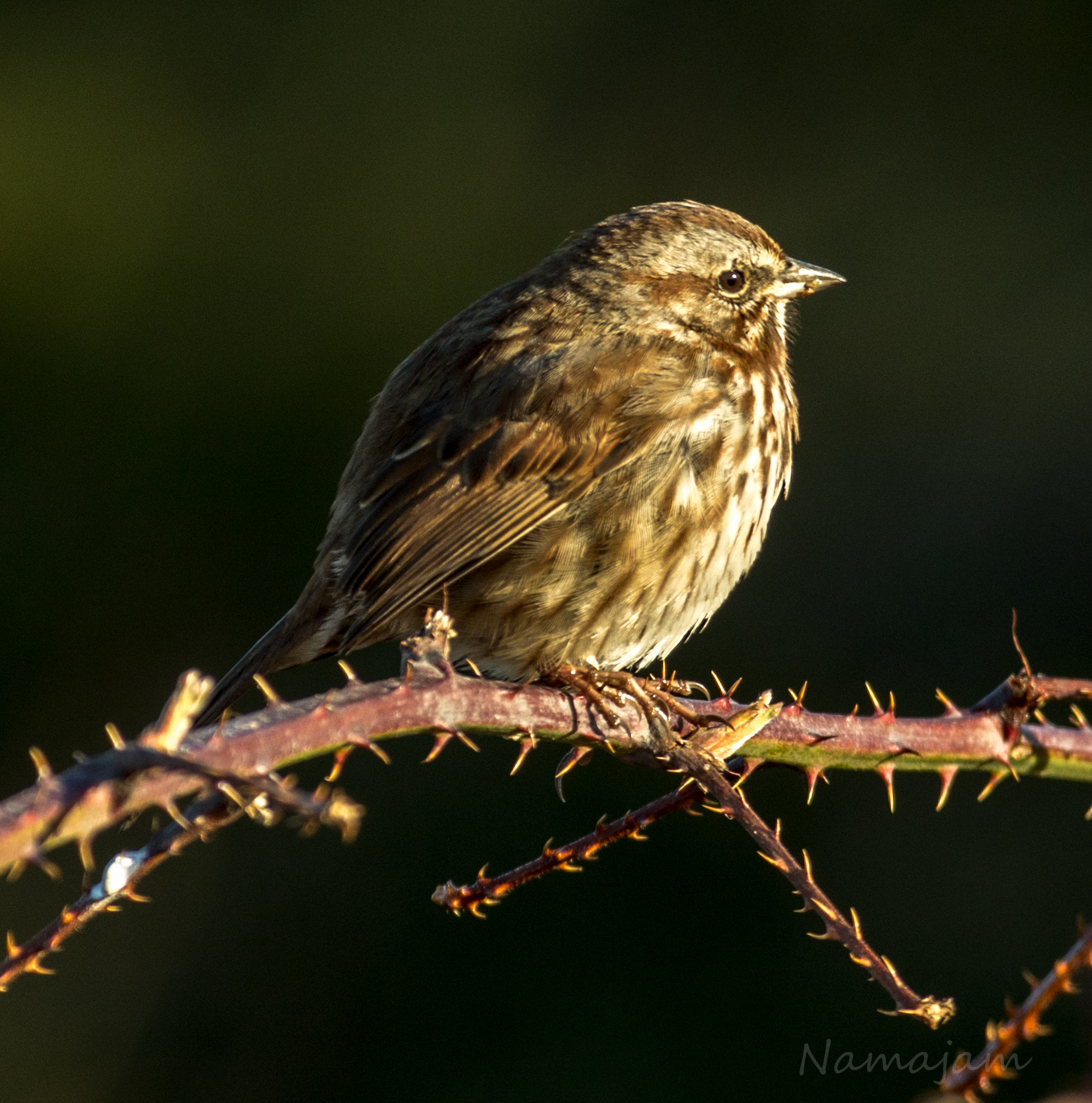 Song Sparrow singing catch me if you can, looks like a great perch, safe from most critters.