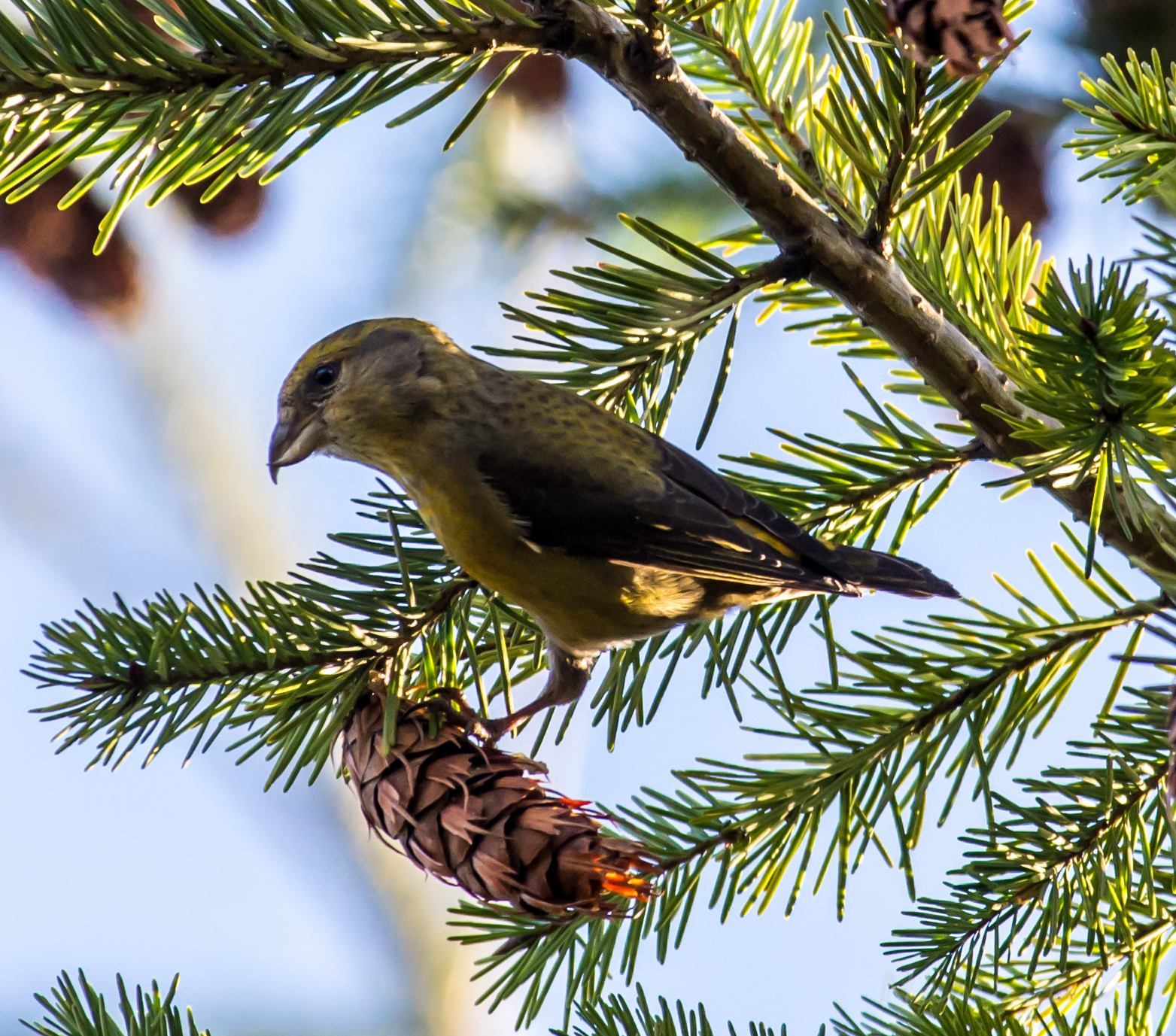 The birds are gathering, mating time…a beautiful time of the year. Female Red Crossbill looking for her mate.